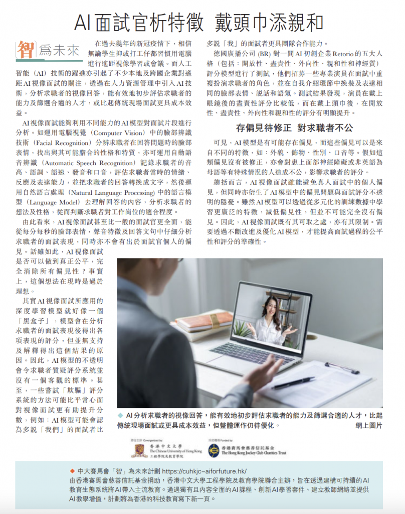 文匯報-教育【智為未來】AI 面試官析特徵 戴頭巾添親和