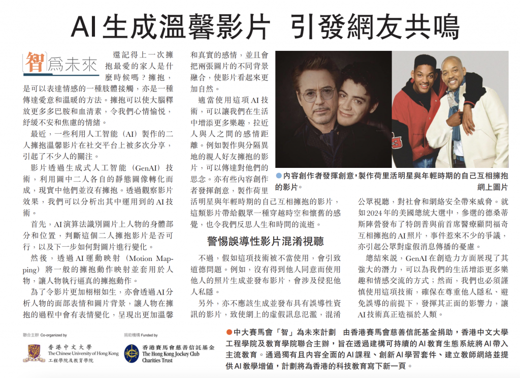 文匯報-教育【智為未來】AI 生成溫馨影片 引發網友共鳴