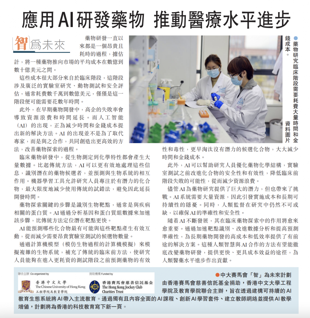 文匯報-教育【智為未來】應用 AI 研發藥物 推動醫療水平進步