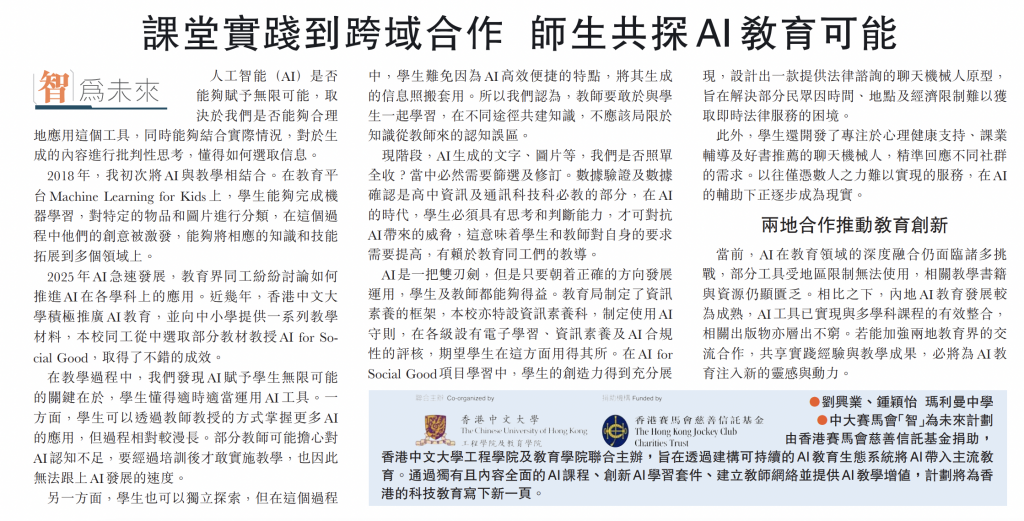 文匯報-教育【智為未來】課堂實踐到跨域合作 師生共探 AI 教育可能