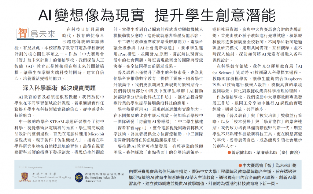 文匯報-教育【智為未來】AI 變想像為現實 提升學生創意潛能